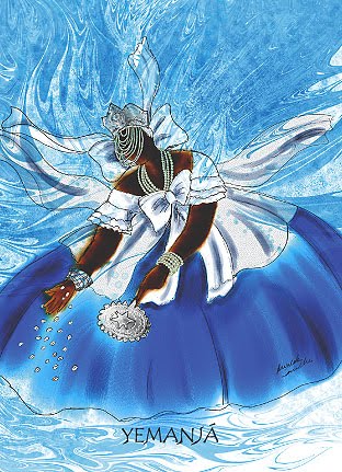 Iemanjá é a Grande Mãe dos Orixás, a deusa da maternidade, das grandes águas, mares e oceanos. A palavra “Yemanjá” quer dizer “Grande Mãe cujos filhos são peixes”.