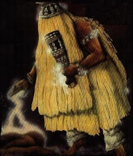 Vestes: as mesmas de Xapanã Abaluaê tendo um cetro chamado xaxará.