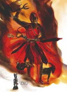 Exu está presente em todos os lugares e mantém contato com todos os orixás e ancestrais. Sua personalidade assemelha-se ao perfil humano. É amante dos prazeres da vida, das cores e odores.