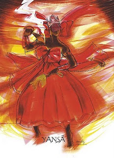 Orixá Guerreira das águas revoltas do Rio Níger, irmã de Iansã, foi a terceira mulher de Xangô. Orixá embora feminina, és muito temida pela sua força e energia, considerada mais forte que muitos orixás masculinos.